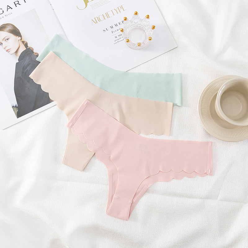 Cross-border exclusive One-piece Seamless Underwear Ice Silk Sexy Low Waist Solid Color Seamless T Panties Women’s Triangle Panties.
