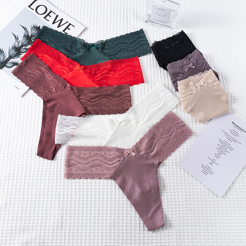Low Waist Seamless One-Piece Lace Edge Breathable Thong Sexy Sport Yoga Women’s Underwear
