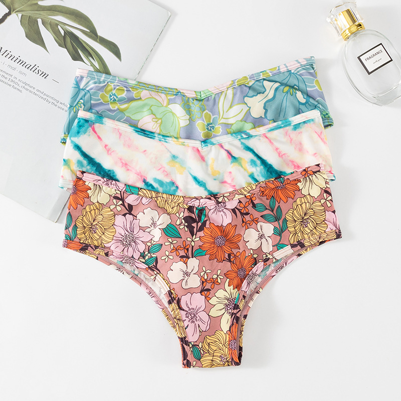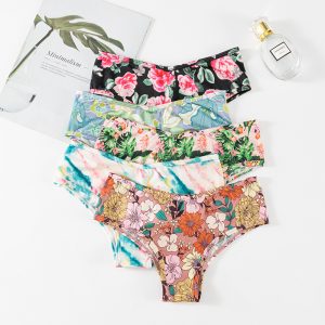 New Sexy Printed Thong Panties for Women, Ice Silk Seamless Ladies’ Briefs, Lightweight Breathable Invisible Underwear for Sports